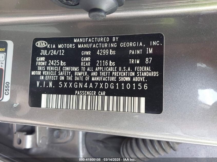 2013 KIA OPTIMA 2013 Gasoline, 2.4, Front wheel drive, VIN - 5XXGN4A7XDG****** from the USA