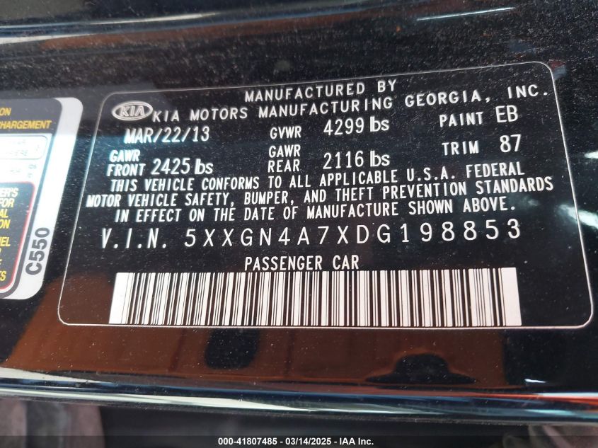 2013 KIA OPTIMA 2013 Gasoline, 2.4, Front wheel drive, VIN - 5XXGN4A7XDG****** from the USA