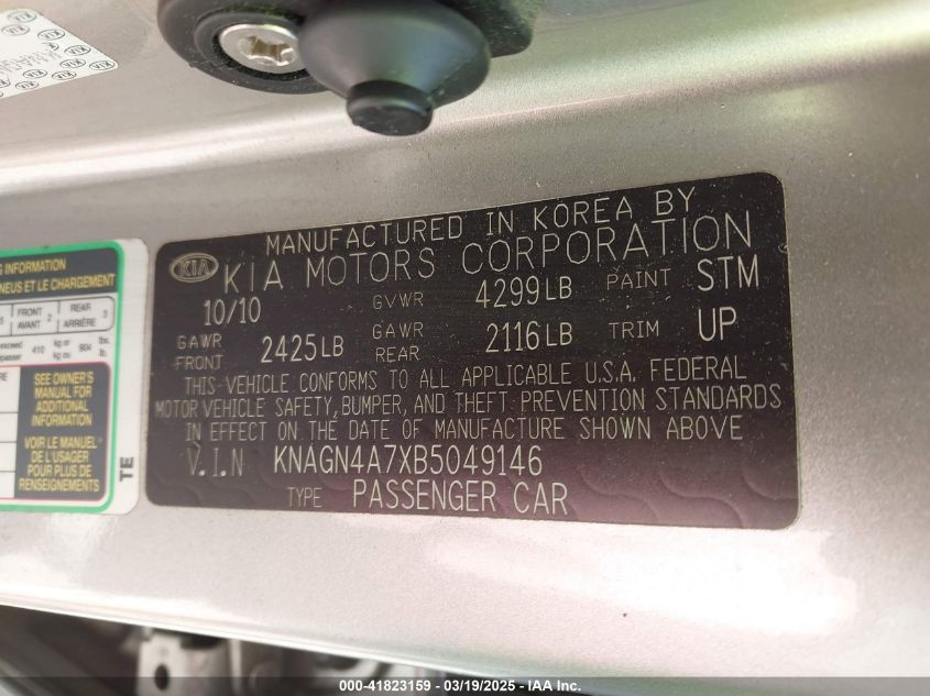 2011 KIA OPTIMA 2011 Gasoline, 2.4, Front wheel drive, VIN - KNAGN4A7XB5****** from the USA