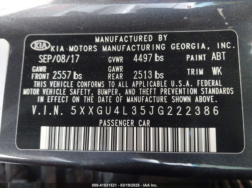 2018 KIA OPTIMA 2018 Gasoline, 2.4, Front wheel drive, VIN - 5XXGU4L35JG****** from the USA