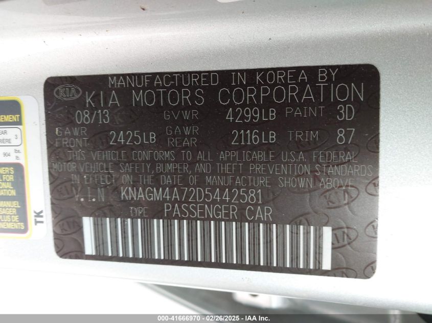 Color SilverCylinders 4Drive Front wheel driveVIN KNAGM4A72D5******State Run & Drive VerifiedDamage Front or back AutoRIA