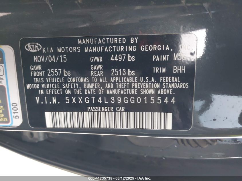 2016 KIA OPTIMA 2016 Gasoline, 2.4, Front wheel drive, VIN - 5XXGT4L39GG****** from the USA