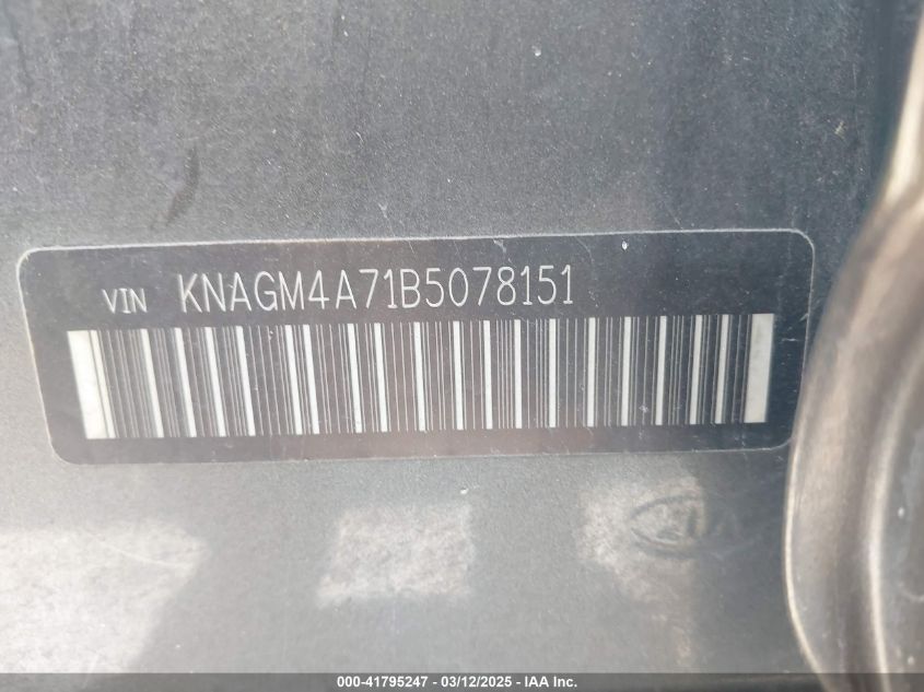 Color BrownCylinders 4Drive Front wheel driveVIN KNAGM4A71B5******State Run & Drive VerifiedDamage Right sideAuction date 2025-03-25 AutoRIA