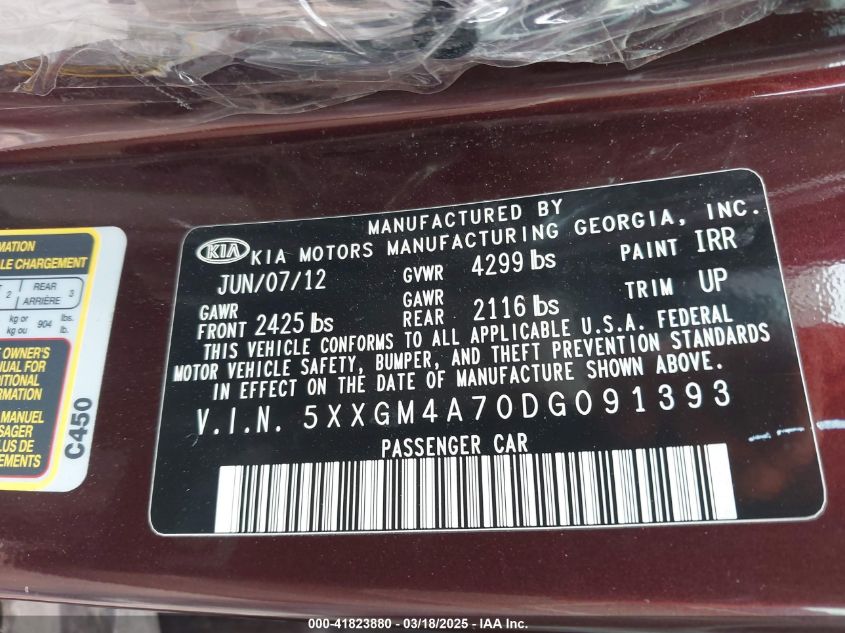 2013 KIA OPTIMA 2013 Gasoline, 2.4, Front wheel drive, VIN - 5XXGM4A70DG****** from the USA