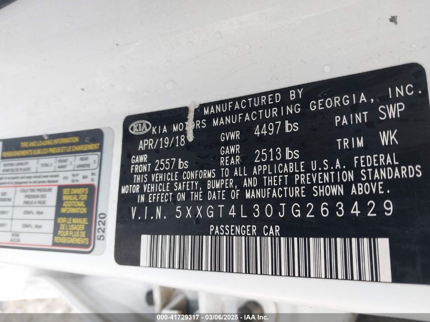 Color WhiteCylinders 4Drive Front wheel driveVIN 5XXGT4L30JG******State Run & Drive VerifiedDamage Front or back AutoRIA