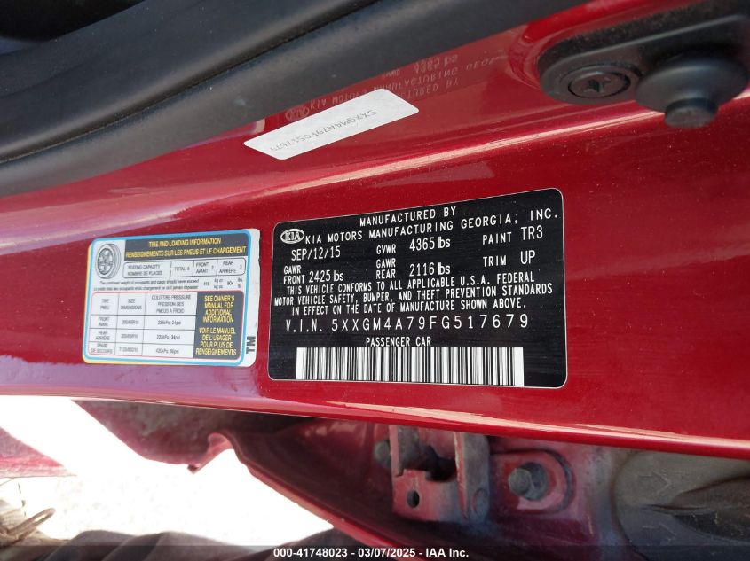 2015 KIA OPTIMA 2015 Gasoline, 2.4, Front wheel drive, VIN - 5XXGM4A79FG****** from the USA