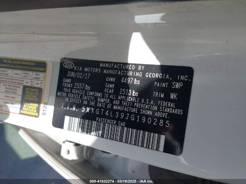 Color WhiteCylinders 4Drive Front wheel driveVIN 5XXGT4L39JG******State Run & Drive VerifiedDamage Insignificant AutoRIA