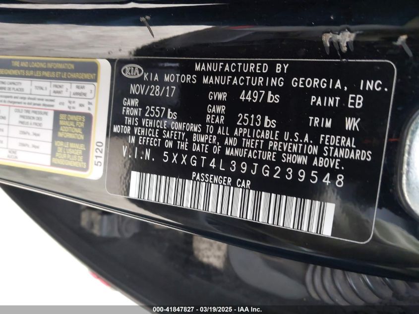2018 KIA OPTIMA 2018 Gasoline, 2.4, Front wheel drive, VIN - 5XXGT4L39JG****** from the USA
