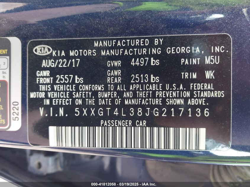 2018 KIA OPTIMA 2018 Gasoline, 2.4, Front wheel drive, VIN - 5XXGT4L38JG****** from the USA