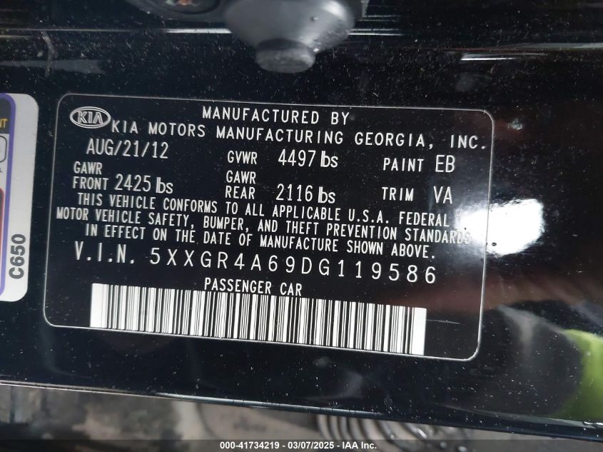 2013 KIA OPTIMA 2013 Gasoline, 2.0, Front wheel drive, VIN - 5XXGR4A69DG****** from the USA