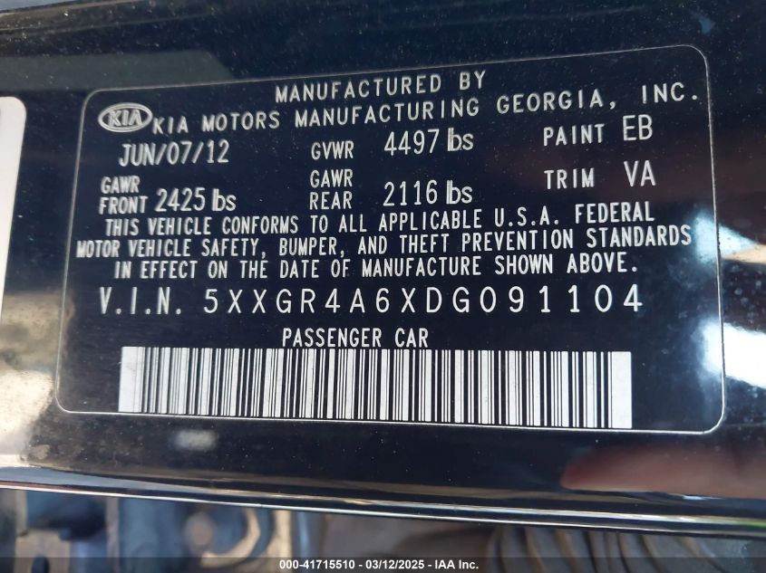 2013 KIA OPTIMA 2013 Gasoline, 2.0, Front wheel drive, VIN - 5XXGR4A6XDG****** from the USA
