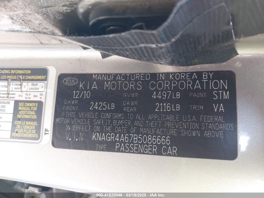 2011 KIA OPTIMA 2011 Gasoline, 2.0, Front wheel drive, VIN - KNAGR4A67B5****** from the USA