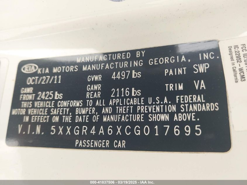 Color WhiteCylinders 4Drive Front wheel driveVIN 5XXGR4A6XCG******State Run & Drive VerifiedDamage Front and back AutoRIA