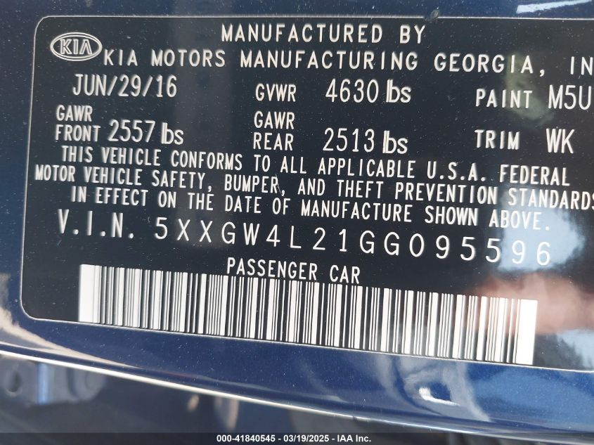 2016 KIA OPTIMA 2016 Gasoline, 2.0, Front wheel drive, VIN - 5XXGW4L21GG****** from the USA