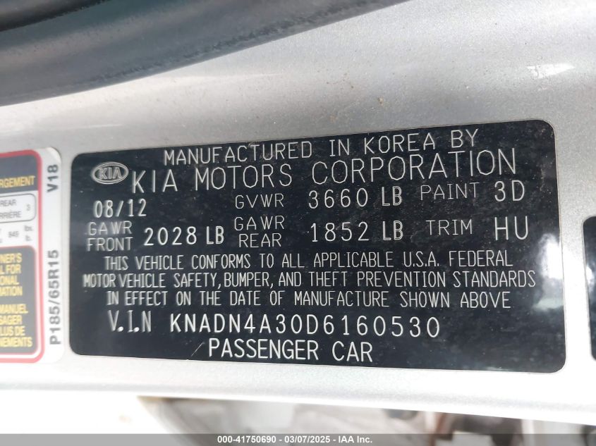 Color SilverCylinders 4Drive Front wheel driveVIN KNADN4A30D6******State Run & Drive VerifiedDamage Front or backAuction date 2025-03-20 AutoRIA