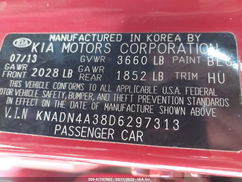 2013 KIA RIO 2013 Gasoline, 1.6, Front wheel drive, VIN - KNADN4A38D6****** from the USA