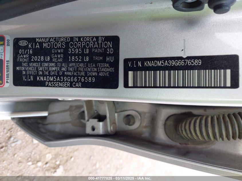 2016 KIA RIO 2016 Gasoline, 1.6, Front wheel drive, VIN - KNADM5A39G6****** from the USA