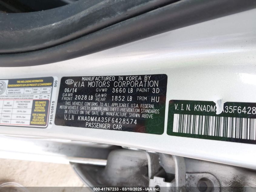 2015 KIA RIO 2015 Gasoline, 1.6, Front wheel drive, VIN - KNADM4A35F6****** from the USA