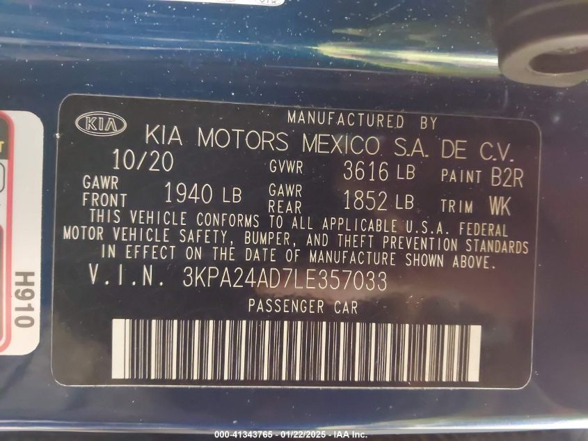 2020 KIA RIO 2020 Gasoline, 1.6, Front wheel drive, VIN - 3KPA24AD7LE****** from the USA