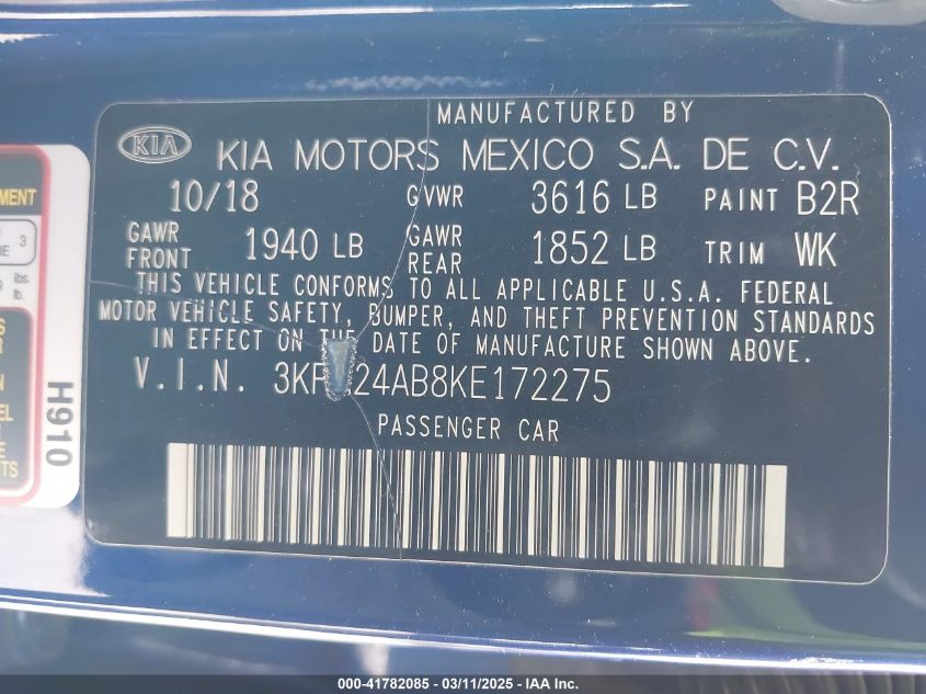 2019 KIA RIO 2019 Gasoline, 1.6, Front wheel drive, VIN - 3KPA24AB8KE****** from the USA