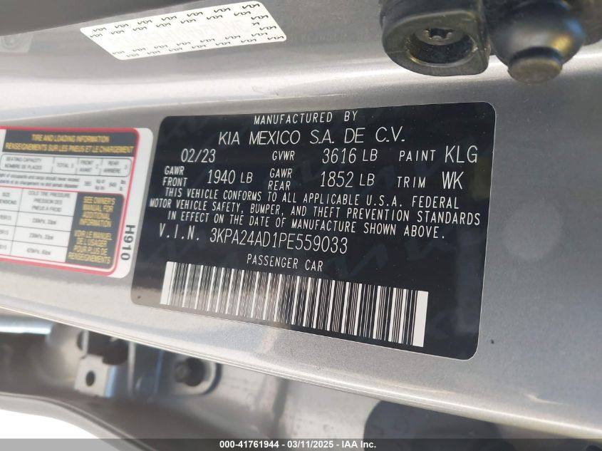 2023 KIA RIO 2023 Gasoline, 1.6, Front wheel drive, VIN - 3KPA24AD1PE****** from the USA