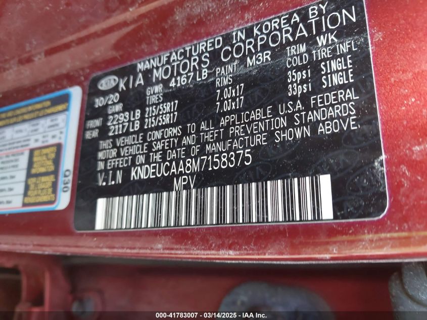 Color OrangeCylinders 4Drive Full driveVIN KNDEUCAA8M7******State Run & Drive VerifiedDamage Interior fire AutoRIA