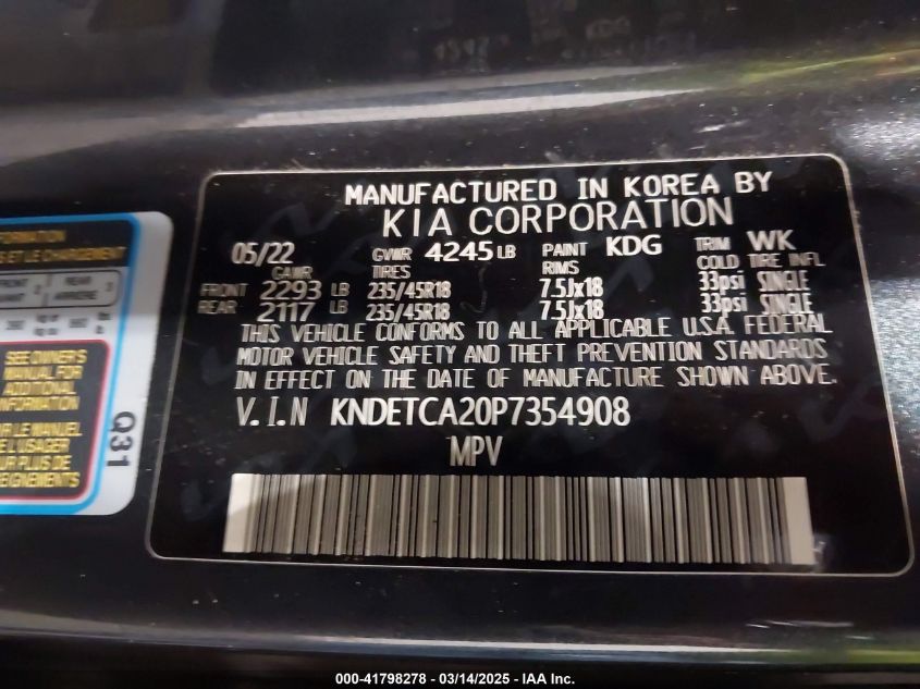 Color GrayCylinders 4Drive Full driveVIN KNDETCA20P7******State Run & Drive VerifiedDamage Front or back