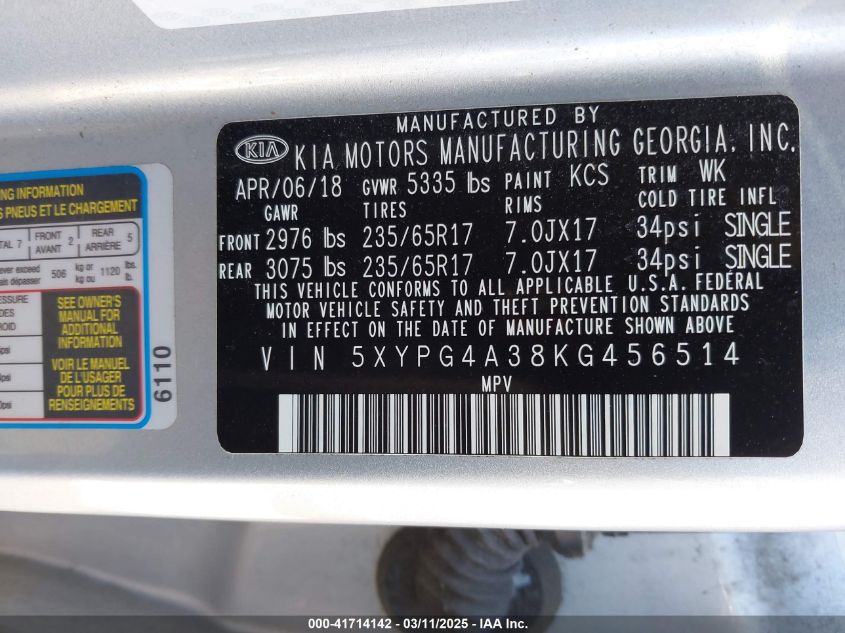 2019 KIA SORENTO 2019 Gasoline, 2.4, Front wheel drive, VIN - 5XYPG4A38KG****** from the USA