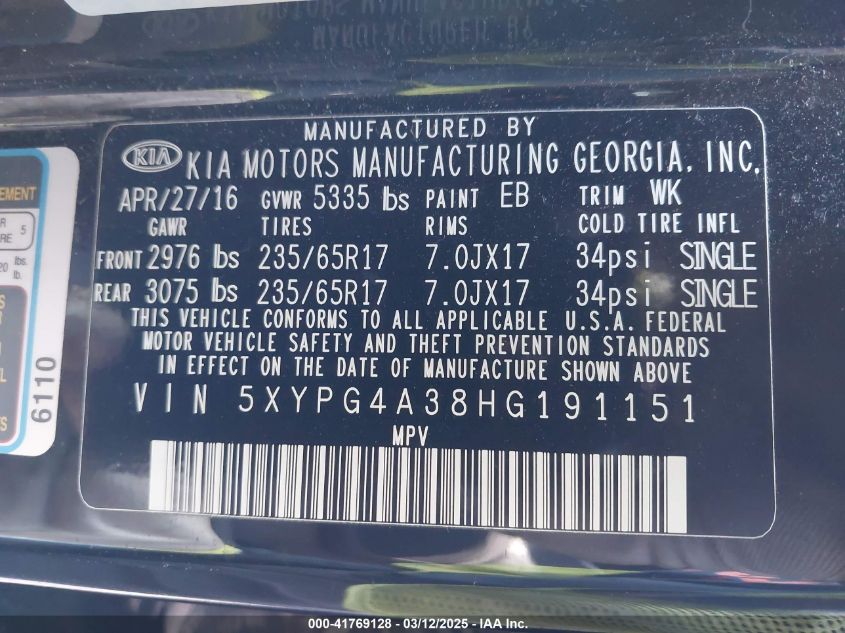 2017 KIA SORENTO 2017 Gasoline, 2.4, Front wheel drive, VIN - 5XYPG4A38HG****** from the USA