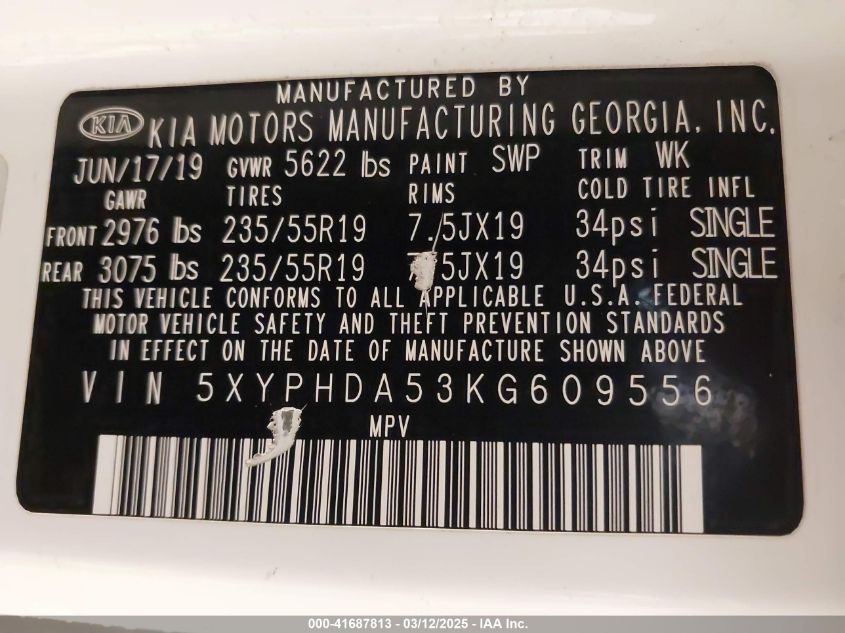 2019 KIA SORENTO 2019 Gasoline, 3.3, Full drive, VIN - 5XYPHDA53KG****** from the USA
