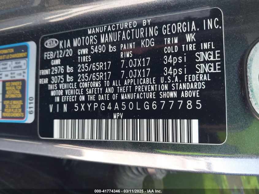 2020 KIA SORENTO 2020 Gasoline, 3.3, Front wheel drive, VIN - 5XYPG4A50LG****** from the USA