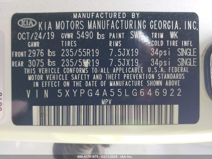2020 KIA SORENTO 2020 Gasoline, 3.3, Front wheel drive, VIN - 5XYPG4A55LG****** from the USA