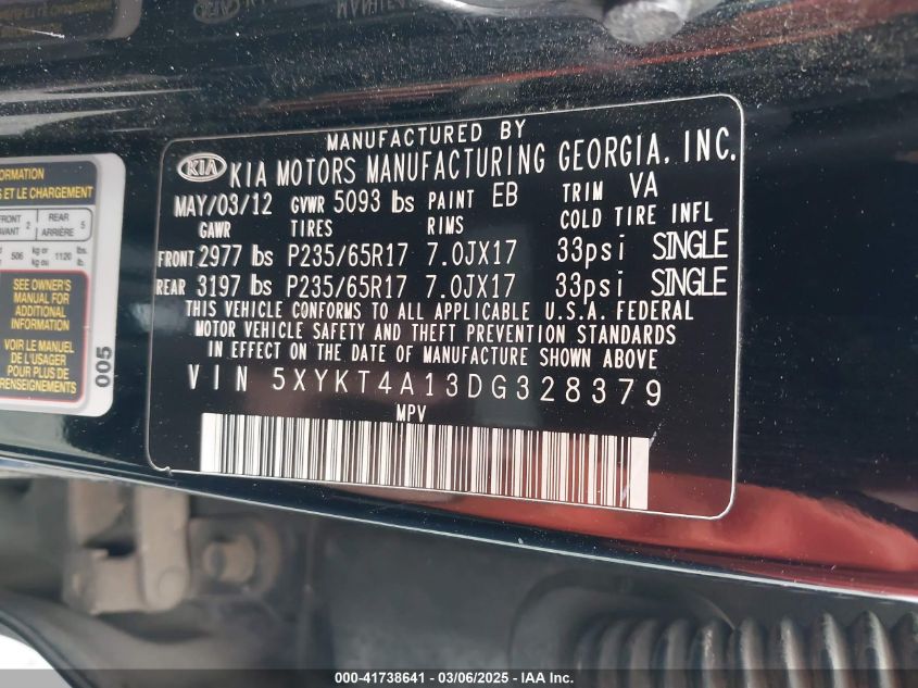 2013 KIA SORENTO 2013 Gasoline, 2.4, Front wheel drive, VIN - 5XYKT4A13DG****** from the USA