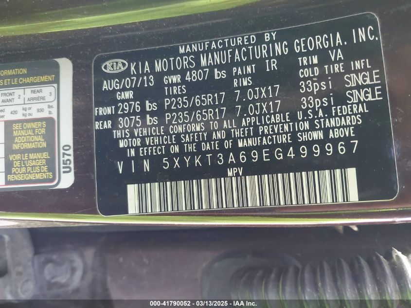 2014 KIA SORENTO 2014 Gasoline, 2.4, Front wheel drive, VIN - 5XYKT3A69EG****** from the USA