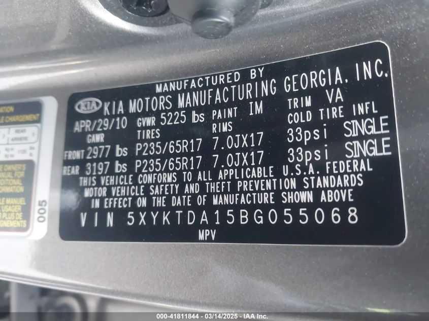 2011 KIA SORENTO 2011 Gasoline, 2.4, Full drive, VIN - 5XYKTDA15BG****** from the USA