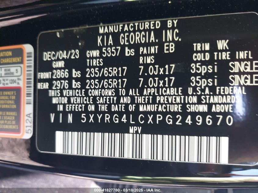 2023 KIA SORENTO 2023 Gasoline, 2.5, Front wheel drive, VIN - 5XYRG4LCXPG****** from the USA