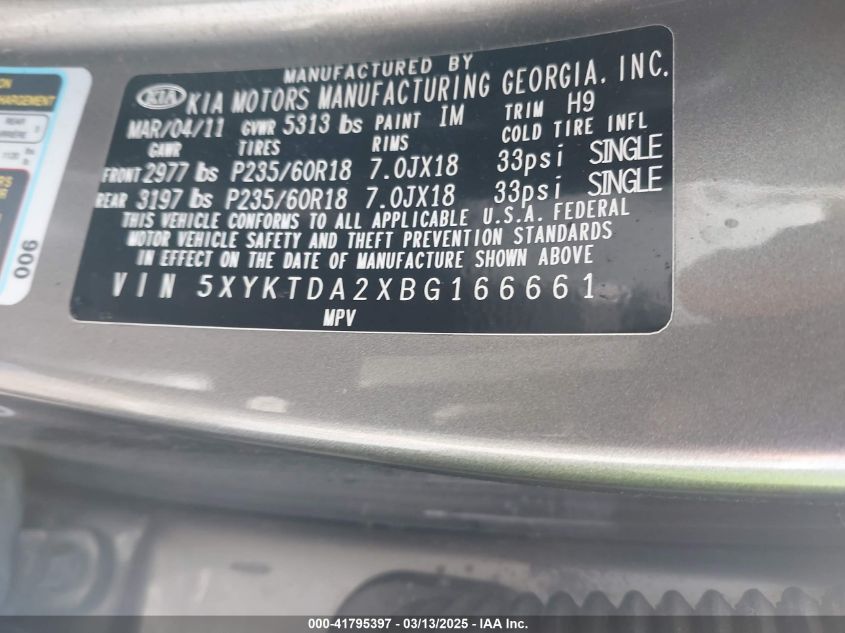 2011 KIA SORENTO 2011 Gasoline, 3.5, Full drive, VIN - 5XYKTDA2XBG****** from the USA