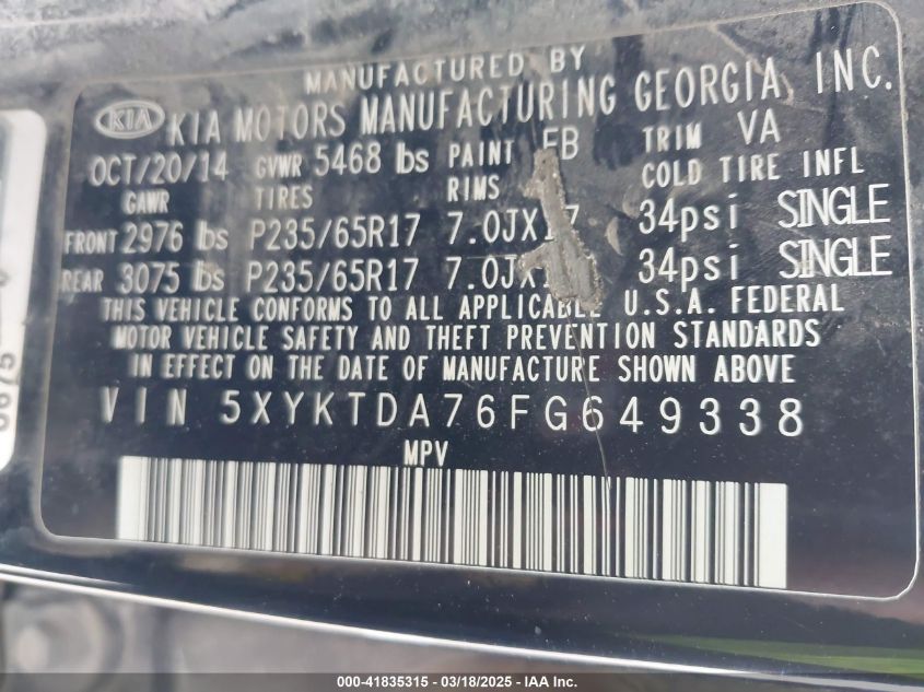 2015 KIA SORENTO 2015 Gasoline, 3.3, Full drive, VIN - 5XYKTDA76FG****** from the USA