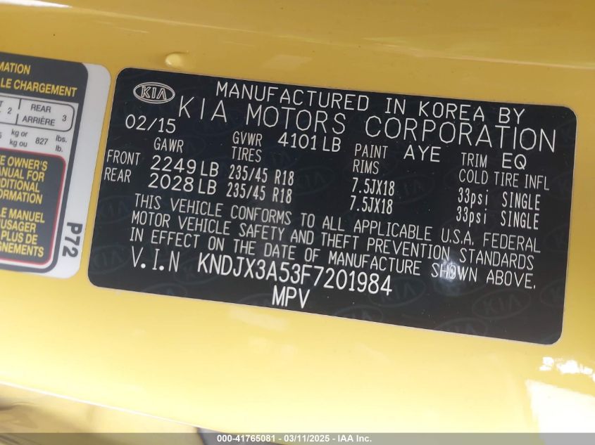 Color YellowCylinders 4Drive Front wheel driveVIN KNDJX3A53F7******State Run & Drive VerifiedDamage BackAuction date 2025-03-25 AutoRIA