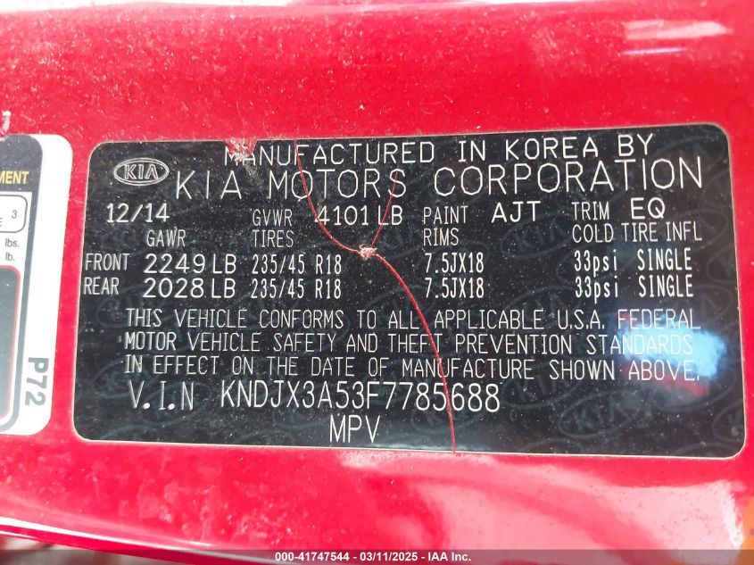 Color RedCylinders 4Drive Front wheel driveVIN KNDJX3A53F7******State Run & Drive VerifiedDamage Front or backAuction date 2025-03-26 AutoRIA