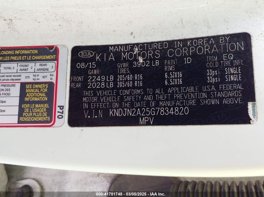 Color WhiteCylinders 4Drive Front wheel driveVIN KNDJN2A25G7******State Run & Drive VerifiedDamage Front or back AutoRIA