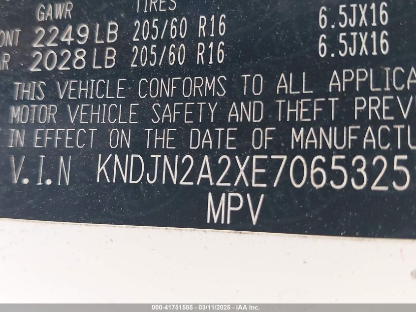 Color WhiteCylinders 4Drive Front wheel driveVIN KNDJN2A2XE7******State Run & Drive VerifiedDamage Front or backAuction date 2025-03-28 AutoRIA