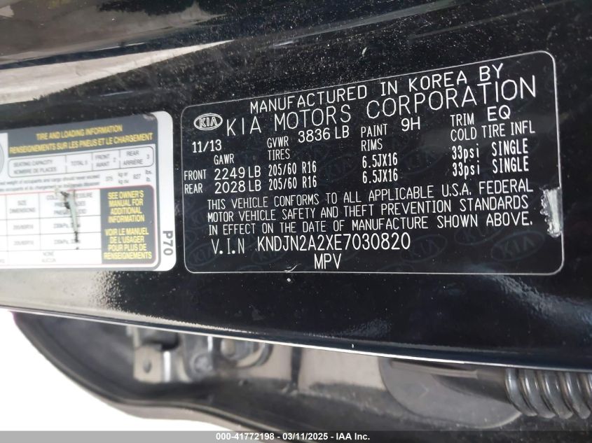 Color BlackCylinders 4Drive Front wheel driveVIN KNDJN2A2XE7******State Run & Drive VerifiedDamage Front or backAuction date 2025-03-26 AutoRIA