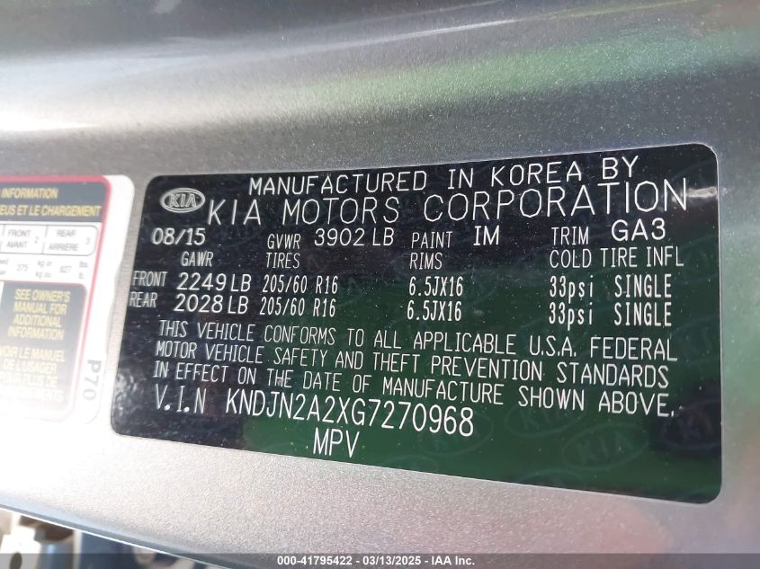Color SilverCylinders 4Drive Front wheel driveVIN KNDJN2A2XG7******State Run & Drive VerifiedDamage Front left AutoRIA