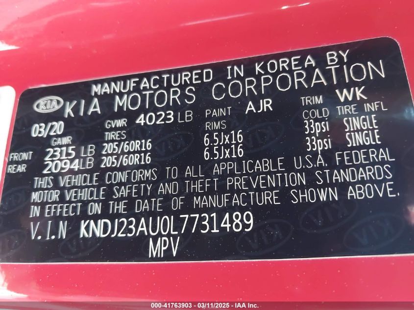 Color RedCylinders 4Drive Front wheel driveVIN KNDJ23AU0L7******State Run & Drive VerifiedDamage From the sides AutoRIA