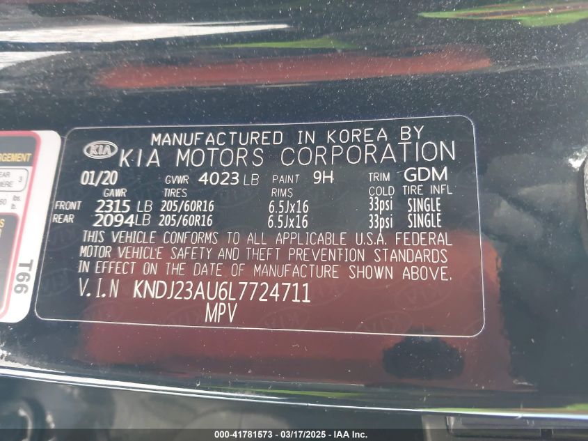 Color BlackCylinders 4Drive Front wheel driveVIN KNDJ23AU6L7******State Run & Drive VerifiedDamage Front left AutoRIA