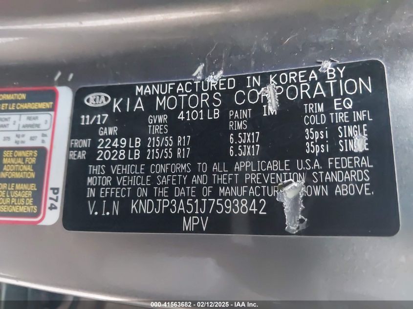 Color GrayCylinders 4Drive Front wheel driveVIN KNDJP3A51J7******State Run & Drive VerifiedDamage Front left AutoRIA