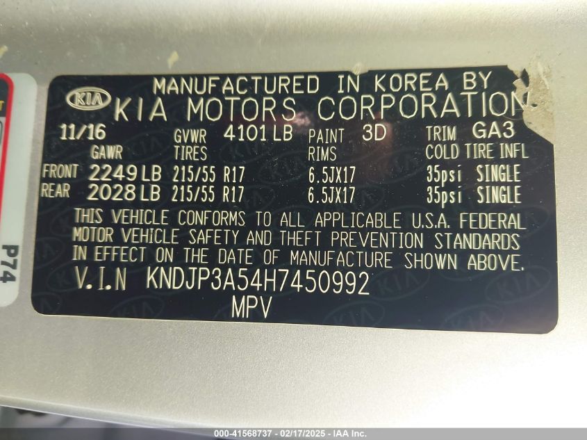 Color SilverCylinders 4Drive Front wheel driveVIN KNDJP3A54H7******State Run & Drive VerifiedDamage Front or back AutoRIA