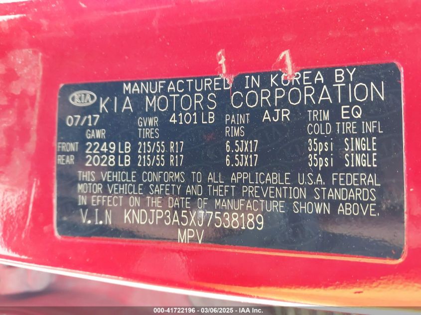 Color RedCylinders 4Drive Front wheel driveVIN KNDJP3A5XJ7******State Run & Drive VerifiedDamage Front right AutoRIA