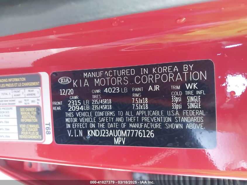 2021 KIA SOUL 2021 Gasoline, 2.0, Front wheel drive, VIN - KNDJ23AU0M7****** from the USA
